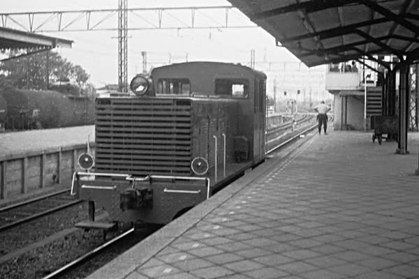 今回は毎度お馴染みブレてる、ボケてる、カビつきの古ネタ駅撮り写真でございます。 ナンデこんな小汚い写真をチョイスしてアップしたのか ・ ・ ・、当然それなりの訳が あるんですよ。ホームに停車中の車両、足元こそ写っておりませんが、その風体から 今でも何処かの専用線や転がっている、2軸の小型ディーゼル機関車だと判りますね。 要するに入換え機とかスイッチャーとか呼ばれている動力車で、ごく一部の鉄な方に 絶大な人気を誇る車両なのでございます。働く所が専用線や工場の中、貨物列車が 発着する頃になると駅にチョコット顔を出す、ってな具合で、中々お目に掛かることが 出来ないのでございます。そんな入換え機の一つが写真の西武鉄道D21型D22号機、 同形式のD21号機の方は、華麗なルーツからネットで写真仕様等を見られるけれど、 こちらD22号機は探し方が下手なのか1枚の画像もヒットしなかったので、自分勝手に レア物と思ってお目に掛けた次第です。ところで、D22は所沢工場で蒸気機関車から 改造した自家製だそうですよ。う〜む所沢工場恐るべし。 西武池袋線 所沢 1968-8 Photo by 団長 |