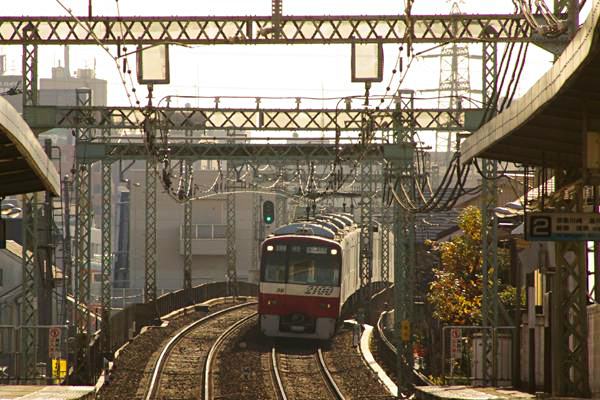 東海道本線の海側を平行に走っている京浜急行って、意外と線路にアップダウンが あるのでございます。高架の京急川崎から下り南武支線・東海道貨物線を八丁畷で アンダークロス、そのままレベルで鶴見市場へ入り、ホームを越えたら一気に勾配を 駆け上がり鶴見川鉄橋を渡り高架の京急鶴見へ、その先はまた地平レベルに下る。 そこで、今回の駅撮りは、鶴見市場品川寄りの踏切からホーム越しに鶴見川鉄橋を 渡って駅に指しかかる2100系快速特急をばアップでございます。相変わらず光線は、 逆光のへそ曲がりカットではございますが、時は夕暮れ時、順光じゃ夕焼け小焼けの 雰囲気を出せるスキルの持ち合わせはございません。しかし、モット長い玉が有れば ホームぐらいは捌けた筈、改めて我がビンビ〜を実感させてくれた、駅撮りなのです。 京急本線 鶴見市場 2009-12 Photo by 団長 |