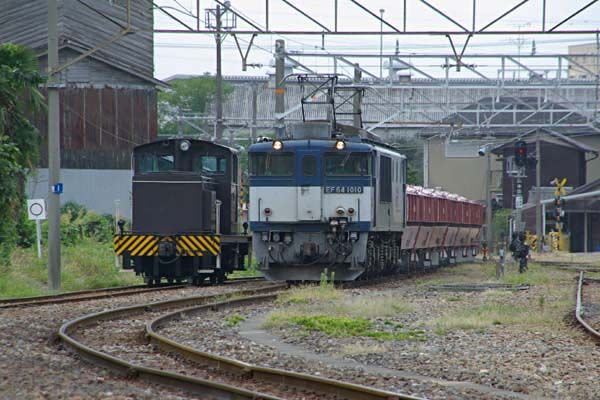 日頃からノーマルな生活を営んでいる大多数の方々が駅と言って頭に浮かべるのは、 通勤通学お買い物の為に列車に乗る場所でございます。ところが、思鉄団員の様に 蒸気機関車が、茶色い客車を引っ張ってる時代から鉄に嵌っちまったアブノーマルな 人達にとっちゃぁ、ホームが無くったって駅は駅なのでございます。つまりなんですね、 明治の昔から駅とは「貨客の積卸・乗降を行なう所」なのです。こういう駅を一般駅と 称し、旅客扱いのみが旅客駅、貨物の積卸のみは貨物駅となりますが、操車場での 組成を廃止して貨物列車の運行を面から点に変えた国鉄末期に殆んどの一般駅が、 旅客駅に変身したのでございました。そんな一般駅受難の現在も明治の御世からの 鉄道本来の役目を伝えているのが、美濃赤坂駅なのでございます。旅客列車の方は 東海道本線直通も無くなり、全て313系大垣止まりのワンマンで鉄的にはイマイチも、 一日3本の石灰石専用貨物列車と、その石灰石を工場から美濃赤坂まで運びJRに 受け渡す、日本で唯一の私有貨物専用西濃鉄道の存在が、宜しいのでございます。 EF64に牽かれた石灰石専用ホキ9500形空返列車が到着、空返のホキを乙女坂駅に 運ぶ西濃鉄道のディーゼル機関車DD403は、既に到着線の横で待機中、JREF64と 西濃のDD403の並びに思わず頬が緩んでしまう、思鉄なのでございます。 東海道本線美濃赤坂支線 美濃赤坂 2013-10 Photo by 団長 |