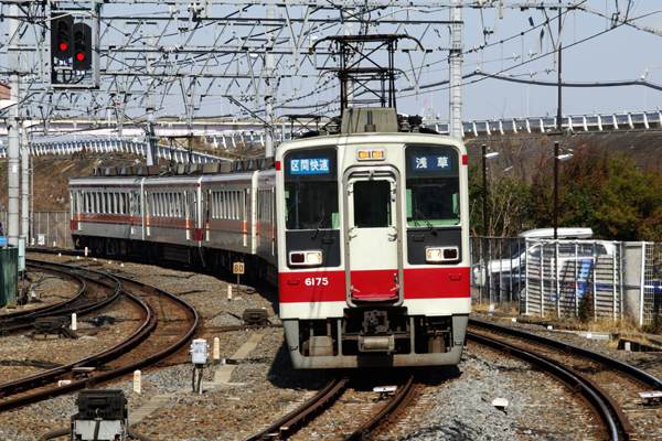 駅撮りファンの皆様、明けましておめでとうございます。さて、2014年駅撮り探検団の オープニングは、昨年最後にアップした新伊勢崎に引き続いての東武ネタは鐘ヶ淵を ご笑覧頂きます。東向島なんて野暮な駅名に変えられちまった玉ノ井を過ぎて高架を 右に曲りながら下り切ると突き当たりは荒川の土手となり、線路は、逆S字を描く様に 左カーヴしながら抜け、荒川土手沿いを堀切に向かいます。その左カーヴに沿って 鐘ヶ淵の駅がございます。駅の配線は相対式ホームの間に上下中線のある2面4線と なっているので、上り中線を通過していく列車を順光で上りホームから楽勝でモノに 出来るのです。下り列車は、上下中線の間に架線柱や信号機・リレーボックスなどの 障害物と逆光の諸条件を上手く捌けば、案外面白いカットが撮れるかも知れません。 以上、柄にも無くマトモなコメの今年最初の駅撮り探検団でございまた。 東武伊勢崎線 鐘ヶ淵 2009-2 Photo by 団長 |