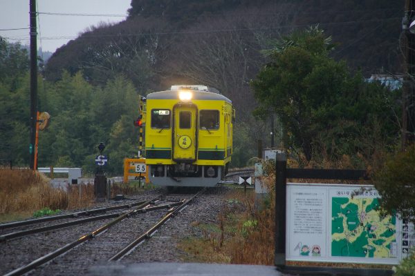 旧国鉄一般気動車色で運用中のいすみ鉄道キハ52が、4月からタラコ色首都圏色に 変わっちゃうてんで、思鉄団員共にゲストを含めオジサン鉄4人で行って参りました。 週間天気予報は大外れ、一様撮影地と決めた西大原〜上総東は雨・雪・みぞれが、 目まぐるしく変わりながら降り続く最悪の状況でございました。互いに悪天候の原因は 「お前だ!」っと罵り合いながら、何とか目的のキハ52を撮った帰りに上総東駅から 乗車したいすみ350形が、進入して来るカットの駅撮りを今回ご笑覧頂きます。一見 旧国鉄20系気動車のセコハンをまた増備?っと思わせる、昭和チックの車体ですが、 いすみ350形気動車は、2013年2月から営業運転に入った新潟トランシス御謹製の 最新車両なのでございます。乗り心地も良し、木目調の内装も良し、加速性も良し、 そして何より嬉しい事は、側窓が開閉出来るのです。鉄な人達にも日常に利用される 方々にも宜しい新車「いすみ350形気動車」のコンセプトは、社長さんが自らの考えた だそうです。さすが、鉄な心をお持ちの社長さんならではのアイデアですね。 いすみ鉄道 上総東 2014-2 Photo by 団長 |