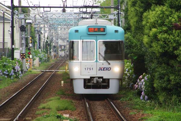 雨空続く梅雨なのに何故故名付けた水無月、なんてぇ事は如何でもいいけど、雨が 降ればカメラやレンズが濡れるんで、撮り鉄するにゃ鬱陶しい事この上ないのです。 だからって、ニコノスやハウジングでカメラ覆うって線路端なんてぇのは、当然ながら 非現実的なのでございます。ってな訳で、この時期にピッタリなのが駅撮りなのです。 まあ光に恵まれない梅雨、どうせ撮るなら紫陽花と列車の取り合わせなんてぇのが、 季節感があって宜しいじゃないでしょうか。紫陽花なら関東だと箱根登山鉄道が有名 ではございますが、チョット手間隙がかかるんで、ここは一つ都内で楽しめるお気軽 紫陽花スポット、井の頭線は西永福駅下りホーム先端から駅撮りをご笑覧下さい。 京王井の頭線 西永福 2014-6 Photo by 団長 |