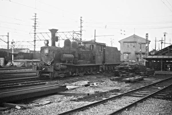 2年ほど前、館林駅佐野線ホームに停車中の73・78系を駅撮り探検団でアップしたの 憶えていますか?その頃館林には、駅の大田方面に電車区と浅草方面に機関区が、 ございました。電車区の方は、南栗橋の派出所となっちまったけど、電留線等は今も 健在ですが、機関区はいつの間にか無くなってしまいました。そんなことで、当時は、 2番線ホームの先浅草方面に向かって左側に数本の側線があり、蒸気機関車3両が、 留置されていたのを乗車した電車の窓から見つけたのでございました。オ〜コイツァ ラッキー、早速事務所で撮影許可を貰って構内に入り蒸気機関車を見ると、3両共に 無火状態でガッカリも、よく考えりゃ1年前の1966年で東武の蒸気は廃止なのでした。 ところで、写真のベイヤーピーコック製6号機、今じゃ「東武鉄道記念物第12号」となり 東向島(旧玉ノ井)の東武博物館SLスクェアに静態保存されております。 東武伊勢崎線 館林 1967-12 Photo by 団長 |