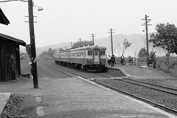 昔々の事、如何した風の吹き回しか、宗谷本線324レを恩根内付近の丘から撮った 事がございました。今回の駅撮り探検団はその時ついで恩根内でに撮ったキハ22を ご紹介でございます。今では草生す片面ホームに場違いな駅舎建っている無人駅の 恩根内も当時は、千鳥状に上下ホームを配した立派な交換駅で、当然の様に貨物の 発着もあって側線の横には、山から切り出された丸太が沢山転がっていおりました。 しかし、C55牽引324レ恩根内発時間は12:07の真昼間、ドウヤッテ撮影可能時間に 恩根内に着たのか、マッタク覚えがないのです。そこで、当時の時刻表を調べると、 下り利尻で一夜を明かし、稚内より宗谷で音威子府、此処で途中で抜かされた各停 338Dに乗り換えて恩根内に来たようです。そして、324レを撮って駅に戻りホームで 14:35発下り321レをスナップしているのですが、何故だか牽引機がDD51なのです。 74年6月の時点でC55・C57含め、少なくとも3両のカマが、旭川にいた筈なのにねぇ。 方っぽがDD51って端から分ってたら、名寄の交換の方が、お宝写真でございました。 宗谷本線 恩根内 1974-6 Photo by 団長 |