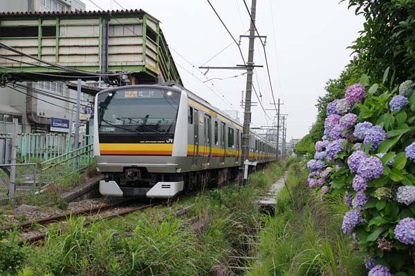 私鉄の南武鉄道として開業した時は別として、旧国を淘汰して101系に、更に103系と 換わり、その鋼体車も全て銀箱205系・209系になった南武線でございました。早い話 走っていた電車は、全部他線区でお払い箱になっちまったセコハンだけだったのです。 ところがそんな南武線にE233系8000番台が新製配置される事になり、2014年10月に 初登場したと思ったら、今年(2015年)6月初めの時点で20編成目が運用入り状態と なりました。こうなるとナクナル君達が、多数出没する前に南武線の205系走行写真を 記録しようと思い出掛け、降りた駅は、前から一度駅撮りしたいと思った、南武線では 珍しい島式ホームの津田山でございました。っと駅下り線側に僅かに咲くアジサイを 見付け、改札を出て下り側踏み切りを渡ったところにある、柵の間にレンズを入れて 撮った、梅雨時ならではの駅撮りのご紹介でございました。 南武線 津田山 2015-6 Photo by 団長 |