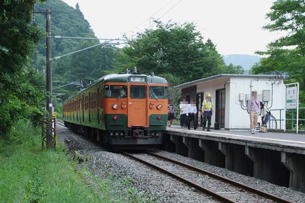今週の駅撮り探検団は前回に引き続き、18切符にて避暑と湘南色115系の2兎を追う 者は2兎共に得ちゃおうという、実に欲張りなヤツでございます。擦った揉んだの末に ようやく建設開始された八ツ場ダムに因って水没区間が付替えられた、吾妻線の終点 大前駅は、標高840mの高みにあり、下界の猛暑がうその様な涼しさでございました。 おまけに走っているのは、オジサン鉄がガキの頃から見慣れた、オレンジとグリーンの 湘南色115系なんですから、駅撮りもイツモより気合が入っちまいました。出た時にゃ コイツのお陰で旧国やPC列車が、次から次ぎえ無くなっちゃう悪役でございましたが、 その115系にも銀色した新たな悪役の魔の手が、迫って来そうな雰囲気でございます。 だけど、架線が切れたって窓が開き、並走路線を抑止せず、停止車両と同直線上に 貫通扉から車外へ避難出来ちゃう、昭和生まれの115系みたいな構造の車両の方が、 まさかの時にゃ宜しいと思うのは、思鉄だけでしょうか?。 吾妻線 大前 2015-8 Photo by 団長 |