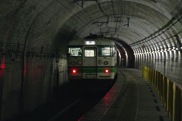 今年の夏はホントに暑かった、なてったって気温の方が体温より高いってんですから、 そんな時に線路端で鉄なんかやってたら、こりゃもう洒落にもならないのでございます。 そこで考えたのが、ヒートアイランドを離れて山岳路線なんぞで鉄すりゃ涼しいじゃん、 ってな思い付きで降りたのが上越線の湯檜曽でございました。湯檜曽駅は鉄な方なら ご存知のとおり、戦前に単線で開通した清水トンネルは現在上り線となり、ホームは 地上に設置されております。この上りホームからは、ループ線を通過する列車を楽に 駅撮り出来る様でございます。一方、戦後に開通した新清水トンネルは、下り線として 使用、ホームはトンネルを入ってすぐの所に設置されております。その下りホームに 水上からの新潟色115系で降りたアッシ、真夏の地上とは別世界の温度にビックリ! 谷川岳直下より吹き来る天然クーラーの威力は物凄く、涼しいを通り越して寒い位で ございいました。 上越線 湯檜曽 2015-8 Photo by 団長 |