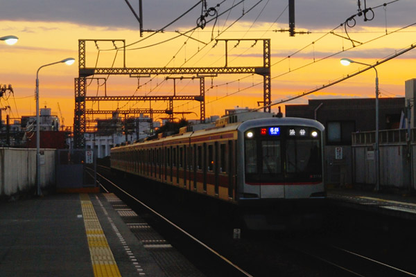 ローカル線によく見かける山郷の鄙びた駅なんかでの駅撮りなら、それなりの宜しい 風情の写真を物に出来ちゃうけど、大手私鉄が走る様な住宅密集地域の高架線じゃ そんな駅風景は、期待できないのでございます。そんな時に有効なのが、夕焼け空と 電車のコラボなんてシュチエーションの駅撮りなのです。しかし、夕焼け空と地上の 車両や駅との露出差が一番の問題、空に露出合わせりゃ車両は真っ黒け、車両に 合わせりゃ夕焼け空は真っ白けになっちゃうんです。だからって日中シンクロなんて 選択肢は無しですぜ、ここはヤハリ空に合わせて撮った後、フォトショップなんぞで 画像ファイル弄くって、暗部の露出を調整するのが宜しいようです。そうするてぇっと 如何しようもない駅撮りが、チョイトは救われるのでございます。それにしても便利な 世の中になりましたねぇ、昔は暗室入って必死こいて覆い焼き何回やっても出来ない 写真が、マウス動かすだけで出来ちゃうですから。ってなわけで、夕暮れの祐天寺に 進入してきた、東横線5050系の駅撮りでございました。 東急電鉄東横線 祐天寺 2011-12 Photo by 団長 |