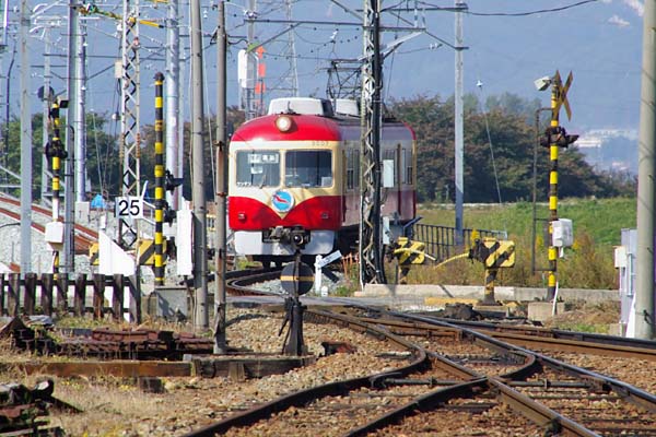 なんて考えていたら、デビュー当時の車体色に塗られたB特急運用2000系A編成が、 下り線を通過、30分弱で4本の列車を撮れる、風景は地方私鉄、効率は大手並みの 長電村山駅の駅撮りでございました。 長野電鉄長野線 村山 2009-10 Photo by 団長 |