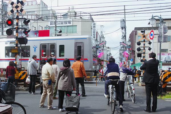 前後にある踏み切りは、活気溢れる商店街を訪れる大勢の人々が列車の通過待ち。 こんな駅前風情が見られる立石駅も2023年完成を目指して高架化されちゃうんです。