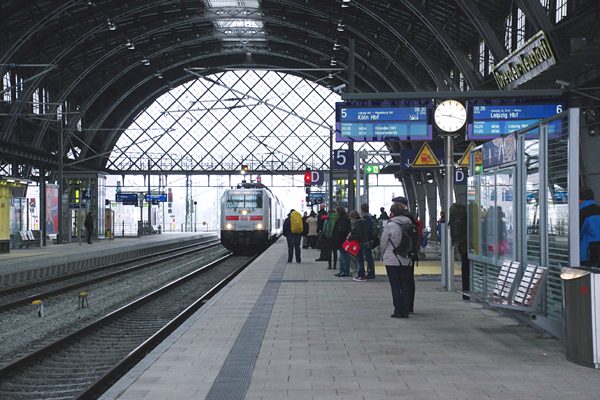通過式ホームが並んでおります。そのホームに入って来たのは、DBのICカラー白色に 赤帯の客車と同じカラーリングの146型電気機関車を先頭にした、ケルン中央駅行き IC 2048列車でございます。真新しいホームに道床、LED表示の行き先表示板や椅子 などの駅施設を見て判るとおり、ドレスデン-ノイシュッタトはリニューアルしたばかりで ございますが、駅本屋もドームも外見は、ほぼ1900年代に造られたまんまなんですね。 新幹線ナンカが通るってぇと、お役所辺りが先頭に立ちナンタラ都市計画てぇ名目で、 元の駅施設を跡形も無く葬り去っちまい、コンクリで無味乾燥な駅を造ちゃう何処かの 国とは、石と木という素材の違いがあるにせよ、歴史に対する考え方が違いすぎます。