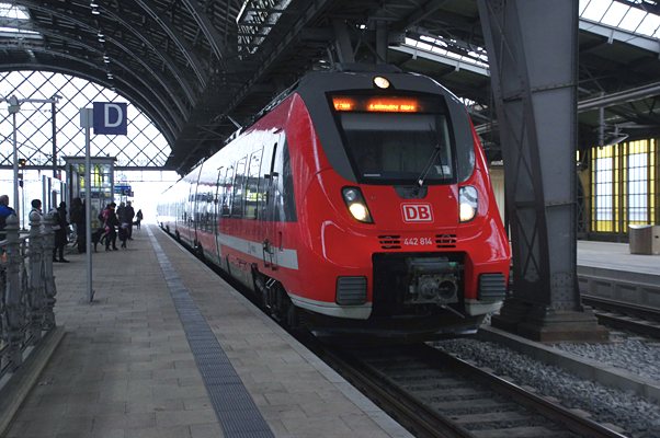 なんて愚痴ってると、乗車待ちのボンバルディア御謹製DBの最新型電車442型運用の RE列車ライプチッヒ行きが入ってきました。ところで駅撮りの基本、ホーム先端からの