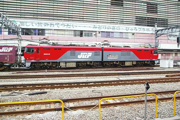 してたいら、お目当ての3086レを牽引する金太郎こと、EH500 38号機の赤い車体が、