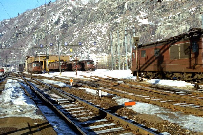 BLS Brig機関区、庫の前に並んでいるELの内左から2番目は間違い無く、ダブルロコの Ae 8/8