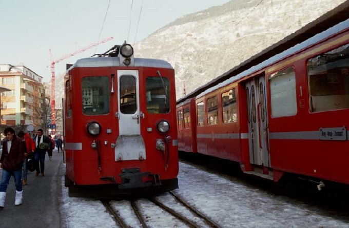 BVZ(Brig-Visp-Zermatt 鉄道)の電車 ABDeh 8/8、カプラーの様に見えるのはセンターバファー、