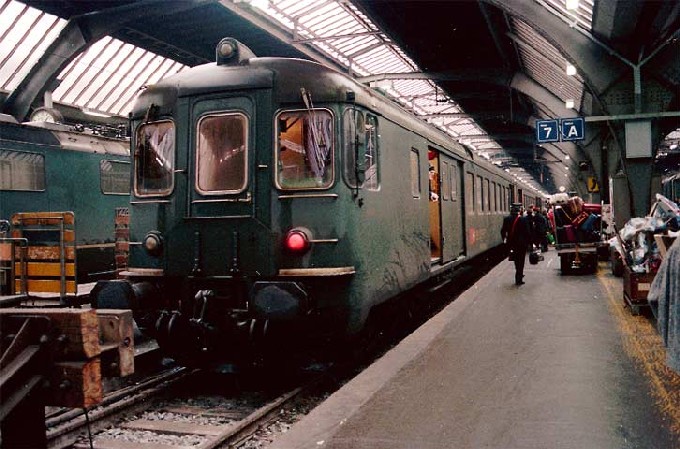 Zürich Hbf 構内風景、荷物を満載したカートや独特の膝まである長い