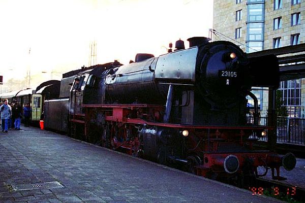 週末にはドイツの何処かで必ず運行される蒸気機関車、こちらは旅客用23系。