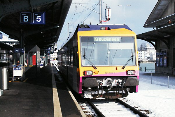 Kreuzlingenに着き乗り換えの電車の行き先を見るとドイツのEngen行きなっていたので、乗ったままで国境通過と思ったらトンデモナイ、一駅先のKonstanzに着くと乗っていた乗客はみな降りていくので、付いて降りると、そこにはちゃんとパスポートコントロールが在りそこを抜けて駅舎の外へ出て振り返ると降りた駅の名前はSBB Konstanzになっていた。DB Konstanz駅の入り口はそこから10数m先にあったけど、せっかく降りたのだからだから一列車遅らせて駅周辺で鉄でもと思ったけれど、いい場所が無く街の風景などを4,5枚撮っただけで後続のRE(地域間急行列車、ICの下位種別優等列車)に乗りUlmを目指します。KonstanzとUlmの間には直通列車の設定は無くREの最初の停車駅RadolfzellでBasel方面から来る列車に乗り換えなければならなず、ボーデン湖からの冷たい風を受けて冷えた体がようやく暖まりいい心持なってこのままズゥーット乗っていたいなぁーと思いながら再び車外へ。 |
