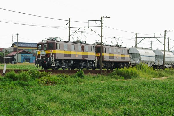 三岐鉄道のED45型電気機関車。全長13m弱ながら、国鉄旧型直流電気機関車の 流れを受けたデッキ付き機関車、思鉄的には実に宜しい鉄な風景なのでございます。 その宜しいカマのデッキには「貨物鉄道博物館FRM10th Anniversary」と書かれた ヘッドマークが、付けられておりました。三セクの臨海鉄道なんぞを除けば私鉄では 珍しく多数の貨物レを運転しているのが、三岐鉄道でございます。ソンナ関係なのか 丹生川駅に隣接して貨物鉄道博物館(運営は別組織)が設置されており、HMはその 開設10周年を祝う為に付けられたものなのでございます。物流体系変化の為なのか 人件費削減の為か、ヤードを廃し操車を捨て、運輸とは無縁な事ばかりに奔走してる 様に見えるJRのお陰か、本来は鉄道敷設の重要な要素である貨物輸送が、日常の 鉄道風景として中々観られなくなった現在、鉄道原風景が間近で見られる三岐鉄道、 ミナサンも一度いって見ませんか。 三岐鉄道三岐線 保々 2013-10