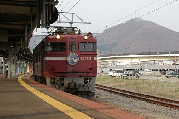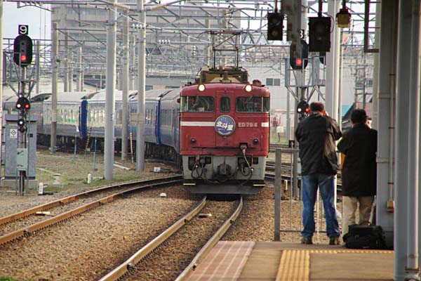 アット言う間の2週間、3月分のHM探検団をアップしなきゃならないけれど、なかなか コメントが浮かんでこないのです。なので、今回は写真に頼った紙芝居的コンテンツで お見せしちゃいます。そこで登場は「北斗星」、’えぇ〜また「北斗星」かよ何回出しゃ 気が済むのかよ’なんて言われちゃったって構いません。両耳塞いでアップなのです。 数年前、津軽海峡挟んで出掛けた鉄の旅、泊り函館となりゃ、これはもう早起きして 「北斗星」を駅撮りするしかございません。しかし、体が付いていかずホーム先端に 着く前にED79に牽かれた「北斗星」が入ってきちまいました。なので同業者写りこみ。