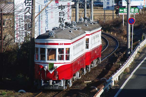 突きつけてられたのは、9年前の事でございました。そこで、今回は廃止関連のHMを アップしたかったのでございますが、そんな都合の良い写真などは当然ございません。 なので、「団体」なるヘッドマークっと言うより種別札のインチキなやつを御覧頂きます。 サボ受けに「団体」を挿して走る2両は、優雅な丸窓がチャームポイント、岐阜市内線の 至宝だったモ510形514と513でございます。生まれは1926年ですから、当時でも車齢 79年のヴィンテージな車両。そのモ510形が故郷美濃町線へ里帰り特別運行の企画を 聞き、岐阜まで遠征して沿線で撮ったのが、このインチキHMなのです。モ510形最後の 走を見られただけでも嬉しいのですが、これに「急」種別札がありゃ最高って、最後は、 揖斐線へ直通の急行で活躍した頃が、忘れられないオジサン鉄の戯言になりました。 名鉄美濃町線 岩田〜下芥見 2005-1