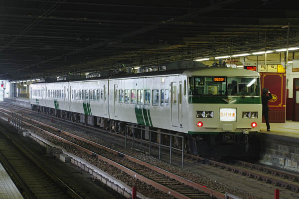 ある、加藤や酒井製などの小型ロコを中心に多数のレア物入換・産業用ディーゼルを 動態保存している「那珂川清流鉄道保存会」が2015年に発注した協三工業製6t機が、 走行するとの事で、その姿を拝まんと行った時に宇都宮で撮った185系「臨時快速」を ご覧頂きます。宇都宮乗換えでの楽しみは、烏山線に新たに配置されたEV-E301系 でございますが、国鉄の生き残り185系臨時快速「GOGO日光号」のヘッドマークも又 どんなデザインか楽しみでございました。小山方面より1番線へは「回送」表示で入線、 まさかこのまま出発するわきゃ無いと思うも、EV-E301系入線に気を取られていたら いつの間にか「回送」は「臨時快速」の表示に変わっちゃっていて、「GOGO日光号」の HMは表示されなかったのでございました。 東北本線 宇都宮 2016-5