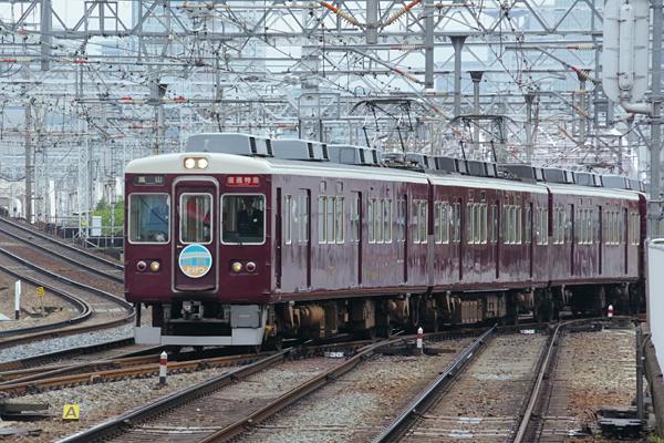 阪急の烏丸、京都の町を観る事無く着いた所は、阪急の三線集う私鉄ファン憧れの 十三でございました。降りた目的は、当然梅田から3複線を走る来るマルーンの風を 2・3番線ホームからの駅撮り。列車運行の下調べなんぞは、いつもどおり何にもして 無い状態で駅撮りを始めると次から次へとヘッドマークを付けた列車が来るのです。 タナボタ状態HM列車に狂気乱舞していると、2号線にHMを付け嵐山の幕表示をした 直通特急「とげつ」7000系が入線してまいりました。神戸線からどうやって京都線へ 転線するんだろうか、中津の先から宝塚線に入り梅田で折り返し、十三で京都線へ 入るのが普通なのかと阪急知らずの思鉄の答えは、見事に不正解でございました。 嬉しい事に直通特急「とげつ」は、十三駅の神戸線と宝塚線の間にある折り返し線を 使って京都線下り線へ転線のでございました。ヘッドマークはキッチリ王道の円盤、 銀箱電車も労も金も惜しまずにマルーンの車体を守っている阪急って最高ですね。 よく言われる東の○急西の阪急ナンテ誰が言ったの?。○急が宣伝でたまに付ける HMは、ほぼヘッドシールだし、車両は銀箱にテープ巻いただけのバッカリじゃんね。 ってな訳で、殆んど駅撮り探検団と化した今回のHM探検団でした。 阪急京都線 十三 2016-11