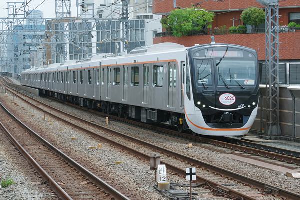 近頃流行のステンレス車体に曲線多用の黒い妻面の新造車両、今はその絶対数が 少ないから偶然にも遭遇うしちゃうてぇと、こりゃラッキーなんてシャッター押しちゃう、 東急6020系もソンナ新造車の一つでございます。自慢の黒いお顔に「6020 DEDUT」 なるヘッドシールを貼っ付け、就任早々大井町線急行列車の運用に入りました。春の (2018/3)ダイヤ改正で朝のラッシュ時10分ヘッドとなった急行列車用に増備された 訳なんだけど、後輩の6000系が新造から未だ10年、なのにもう新しいのを造っちゃう 太っ腹な東急電鉄でございます。もっとも、田園都市線用に2020系を新造した序でに 増備しなきゃ予備編成なくなっちゃう、大井町線急行用にも新しいヤツを造っちゃおう ってんで、10両編成を7両編成に緑のラインをオレンジに張り替えちゃって、新形式の 増備車一丁上がり、ってな顛末なのかも。だって6020系と2020系って別形式にする 程の違いってぇのが、アッシにゃ分んないだもん。 大井町線 溝の口 2018-5