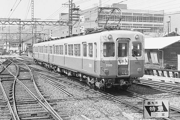 今回のヘッドーマークは、青胴車や赤胴車登場した阪神西宮駅撮りオマケでアップの 「西大阪特急」でございます。もっとも、50年程前に廃止しちゃったんで、鉄分豊富な 方でも馴染みの無いスジかも知れません。現在は、阪神なんば線なんて景気の良い 線名に変わり、近鉄と相互乗り入れで奈良まで快速急行の走る、本線と並ぶ阪神の メインラインですが、伝法線から西九条まで延伸時に、将来のメインラインはお前に 任せたぞ、ってんで、西大阪線なる結構気合の入った線名に変えられました。更に スジも各停だけじゃメインラインたぁ言えねぇや、特急のスジもサービスで引いちゃう、 乗ってけドロボ〜、ってな事で走ったかどうかは、定かじゃございませんが、「N特急」 とも呼ばれた、赤胴車3501形2両編成「西大阪特急」HMの御紹介でございました。 なお、Wikipediaに「西大阪特急」は、愛称じゃ無くって種別名って、都合の悪い事が 書いてあるけど、心優しいヘッドマークファンの皆様は、絶対に読まないで下さいね。 阪神本線 西宮 1968-4