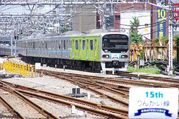 今(2025年)から14年前の9月、EH500牽引3086レ駅撮りの為、新宿駅7・8番線下り 方面ホーム端付近で待ってら、「15thりんかい線」ってなヘッドシールを貼っ付けた、 東京臨海高速の70-000形が、タナボタでやって来ました。ってな事で、今回のHMは、 りんかい線最初の営業区間新木場〜東京テレポートが、開通してから15年目を祝う 「15thりんかい線」でございます。青息吐息の地方三セクと違って、同じ三セクながら 黒字転換に羽田空港アクセス線への接続やら、今ん処良い事尽くめのりんかい線で ございます。この先30・50・100周年のヘッドシールをって、出来ればヘッドマークを 付けた列車が、走る事をHMファンは、願っているに違いありません。来る30thにゃ、 是非とも新型車両71-000形に板物ヘッドマークを付け、30周年を祝って頂きたいと 思って、試運転の画像ググッて見たら、正面見事にノッペラボーだった。 山手貨物線 新宿 2011-9 Photo by 団長 |