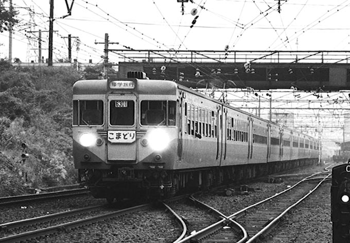 6301M という列車番号を見ても判るように、中京圏の修学旅行生を対象にしていました。 運転区間は品川⇔大垣、車輌は159系使用で、オフシーズンは中央本線に入線出来る様に 低屋根仕様です。この頃の時刻表を見ると、この他に、元祖の”ひので”をはじめ、”きぼう” ”わかくさ”わこうど”わかば”などが運転されていましたが、新幹線の大衆化が進むと、需要が 次々と新幹線に移り、何時の間にか修学旅行専用列車は消えてしまいました。 ♪二度とかえらぬ 思い出乗せて♪ クラス友達 肩寄せ合えば♪ この歌を知っている人は皆、修学旅行専用列車にお世話になっている筈です。ちなみに、 探検団は全員”ひので”のお世話にになりました。あの狭い2×3の座席配置で遠く関西まで 昼行、夜行は鉄分が入っていても当時は辛かったが、今となっては良い思い出です。 東海道本線 小田原⇔早川 1969-10 |