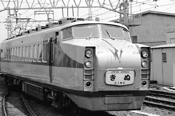 使用車輌は1720形、1700形からの更新車を含めて全部で8編成。6両固定オールM編成、 中間にはソファー付きのサロンルームがあり、ジュークボックスで音楽も楽しめた。座席は勿論 回転式のリクライニング、当時の国鉄151系にも負けない豪華な内装で、まさに私鉄特急の 王者と呼ぶに相応しい東武特急DRC。愛称は鬼怒川線発着が写真の「きぬ」、東武日光発着は 「けごん」に統一されていた。それから、ボンネットの先頭車は車体長がナァ〜ント21.4Mも 有りました。それにしても、一体あの中に何が入っているのか? 東武線 浅草 1976-? |