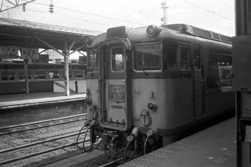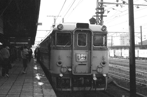 これで、また一つ名物列車が過去帖にはいって仕舞う、是も時の流れか、残念である。 と言う事で、今週の特急”北アルプス”追悼記念の豪華二本立てなんですが、そこは 思鉄HM探検団、特急では無く、当然HMは急行「たかやま」と急行「北アルプス」です。 準急たかやま→特急北アルプスの詳しい事は今月の○道ファンに載っていますので、 本屋さんで立ち読みして下さい。しかし、あの鵜沼の短絡線はどうなるんでしょうね? この際、高山本線を電化して、7000形の北アルプス誕生なんて事、ある訳無いっか! 上 名鉄 神宮前 1968-3 下 北陸本線 富山 1976-9 |
