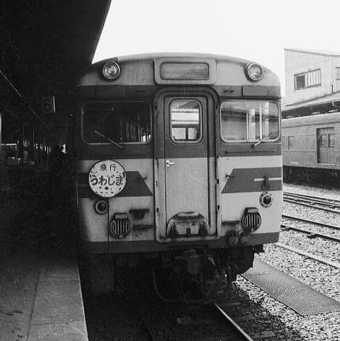 走らないものの沢山のDCネームドトレインが存在し、全ての急行は円形のHMを小脇に抱え、 田舎での優等列車を主張していました。黒潮洗う南国とは言え石鎚山にはスキー場もあり、 ちょっとした山間部路線がほとんどで、車両もキハ58、キハ65,キハ52等の強者揃いで、 ところでこのキハ58、ちょっと変わった髭を生やしていますが、さて、如何してなんでしょう? つたない記憶をたどると、確かミュージックホーン装備車じゃなかったかな?、って思いますが 不確かなので、どなたか真相ご存じの方は弊掲示板にカキコにてご教授ください。 鳴らしてもイノシシに聞かせるのが関の山。広まらなかったところを見ると、やっぱり誰かの 思いつきで装備したのかな?でも、理由はどうあれ一度でいいから聞いてみたかったぁ〜♪