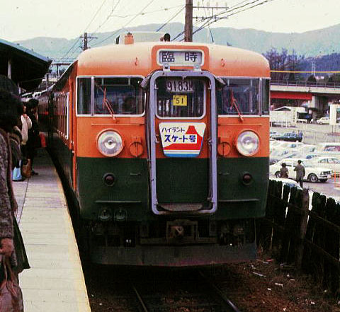 ホームに並ぶと、そこへ入ってきた電車は”デカ目”の165系千マリだったというお話。