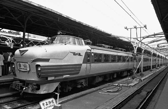 言っても、”何でも格上げ特急”とは訳が違います、それまで10時間以上かかった上野〜金沢を 約6時間30分で結び、大幅なスピードアップを果した。車両もそれまでの10系客車とはダンチで、 今は無き碓氷峠越えの為にEF63との協調運転を可能とした489系でサロ、サハシを含む12両 全車指定、特別急行と呼ぶに相応しい本当の意味での”格上げ特急”でした。コレナラ普通の人も 鉄な人も、納得して特急料金を払いますよね。カプラーカヴァーは無くて当然、無造作に置かれた ”そよかぜ”のヘッドマークや線路間の給水ホース、どれもが在来線が主役だった当時の上野駅を 感じさせます。オジサン鉄は”アァ〜そう言えば”などと呟き、思わず古い時刻表を捲りながら一人 心のタイムマシンに乗り込むのでした。