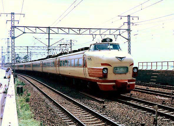 急行”ちどり”が言ったかどうか知らないけど、今回登場は生まれた時から現在まで 1975年から約一年の年休を挟んで、特急として活躍している正統派特急「みどり」。 1961年10月にキハ81誕生と共に、大阪〜博多間の新設気動車特急として 登場。 その後何度かの行き先変更を経て、今や大人気の581系誕生と同時に電車化され、 新大阪〜大分を結ぶ華やかなスター街道を行く特急だった。 その後ヨンサントオで 今回の485系化された。もちろん「みどり」は今も健在?何ですが、往時の風格はなく 運転区間は博多〜佐世保と九州内だけになり、編成も情けない程短くなって仕舞い 「みどり」単独では列車が仕立てられず、”かもめ”や”ハウステンポス”との併結で、 佐世保到着時は僅か4輌。だいたい、「みどり」ってどうも意味がわかりませんねぇ、 「みどり」はあるのに、特急”あお”や”あか”はありません。ど〜して無いんだろう? それに、ハウステンポス”と併結すると何だか愛称と言うより国際結婚した女性の 名前みたい・・・Ms ミドリ・ハウステンポス 。