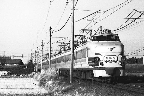 そういうわけで今回はメジャーな特急「ひばり」の登場。ご存知のとおり、上野ー仙台を 結ぶL特急でした。このボンネットの他にも一時は583系も使用され、最盛期には一日 ナント15往復!新幹線開業までは、”まつしま”しか乗れない均一周遊券愛好貧鉄の 仇役として、みちのくの鉄路に君臨していました。 「ひばり」と言えばボンネット485系の印象が強いんですが、最初はキハ82系運用の 気動車臨時特急として1961年に登場しました。この臨時特急評判が宜しかった様で その後定期化、1965年には電車化され、次第に本数も増加していったのです。 しかし、「ひばり」といえば見れば判るあの飛び方・・・どちらかというと遅い鳥の代名詞 だと思うのですが、この鳥の名がなんで特急に使用されたのでしょうね? マ・サ・カ 名前は同じ「ひばり」でも♪りんぐぉ〜〜のぉ〜花びらがぁ〜♪ いやぁ〜そんなことは ヤハリ、鳥の名前だろぉ ・ ・ ・