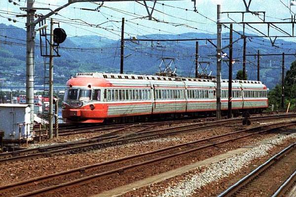さすが思鉄、写真はキッタネェ〜けど被写体はレアだぞ・・・ナンテコッタありません。 鉄な人なら知ってる通り、本家小田急から1983年に1編成を動態保存の意味も含め 譲渡された大井川鐡道の3000形急行「おおいがわ」が金谷の駅に進入するところを、 お得意の駅撮り適当スナップしたやつで御座います。 高性能優等列車の草分けSE時代から御殿場線乗り入れのため、8連接を5連接に 組換えてSSEとなりましたが、大井川鐡道では輸送力的には首都圏と違い5連接でも いささか長かったのか、鉄には嬉しいSSE車の活躍も1993年で終り、今ではその姿を 川根路で見ることが出来ません。それにしても高性能車ってぇのはミンナ耐用年数が そろいも揃って短いの?それに引きかえ旧性能車の丈夫な事、非冷房吊り掛け車の 351系なんて未だにモーター唸らせ活躍中なんですから。そこのところが科学に疎い オジサン鉄には理解が出来ません。