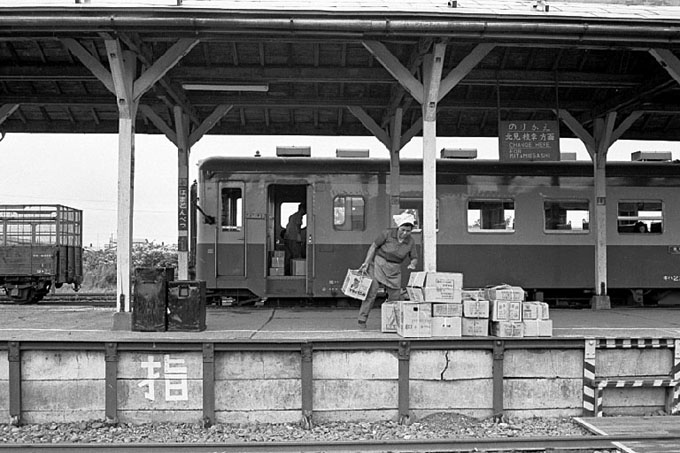 旭川から直通の725Dが3番線に停車中、デッキにもホームにも荷物が山積み、生活匂いが漂って来る。