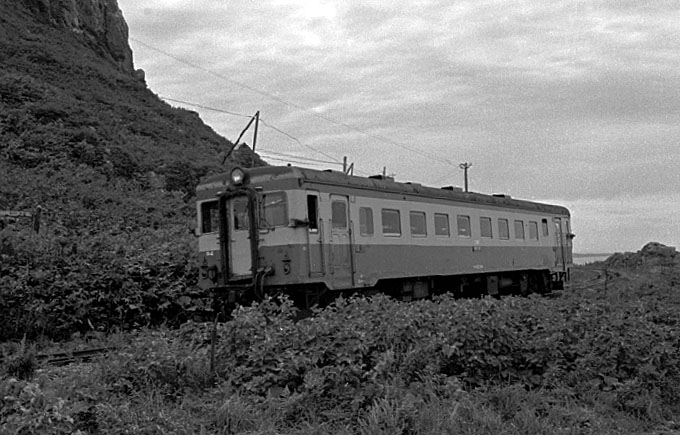 興浜北線のハイライト、斜内山道にある灯台の下をフランジの軋む音をさせながら、キハ22が走っていく。