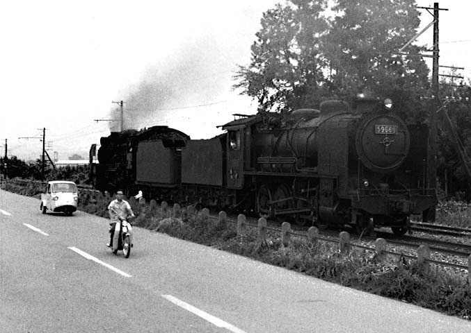 1967,8 越生付近を行くトンボ重連の回送 列車も懐かしいが、車もなんともいえません