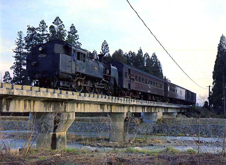 | 喜多方と熱塩11,6キロを結んでいた日中線、私が訪ねた当時は列車は朝晩しかなく「日中は走らない日中線」などと 揶揄されていましたが、ここの列車は全て(といっても3往復だけですが)C11牽引の客車列車・混合列車でした。 もともとは今市から会津地方を通り、喜多方からさらに米沢に到るという、壮大な構想の路線の一部として1938年に 開業したものでした。しかし結局は僅かな盲腸線として開業したにとどまったわけです。我々がここを訪れたのは、 所属していた鉄研の合宿が毎年春、熱塩温泉で行なわれていた為でした。これがなければ果たして訪問していたか どうか。なにしろ 当時の会津は只見線や会津線のC11がメインで、鉄道ファンの目もほとんどがそちらに向いて いました。しかし数次に渡る合宿により熱塩の地は思いでの地と なり、その後も何かというと訪れるようになったのです。 今年の夏もまたOB会の合宿という名目で、仲間たちと熱塩を訪問しました。1984年3月31日をもって廃止された 日中線ですが、熱塩駅は今は日中線記念館として保存されており、ここに経つと往時の姿が思い出されてなりません。 当時の日中線のC11の写真は以前団長も発表していますが、一緒に合宿に行っていただけにほとんどが同じ時に 撮ったものです。その日数の割りに撮った シーンは少ないのですが、距離もさほどなく、またあまり変化のない路線と いうこと、そして何より団長ともどもお尻が重かったのが原因でしょう。そんな日中線の写真、宜しければご覧下さい。 |