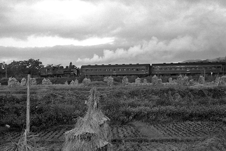 日中線は朝1本、午後2本の運転でした。これは朝の下り列車。 会津加納ー熱塩 1973年10月
