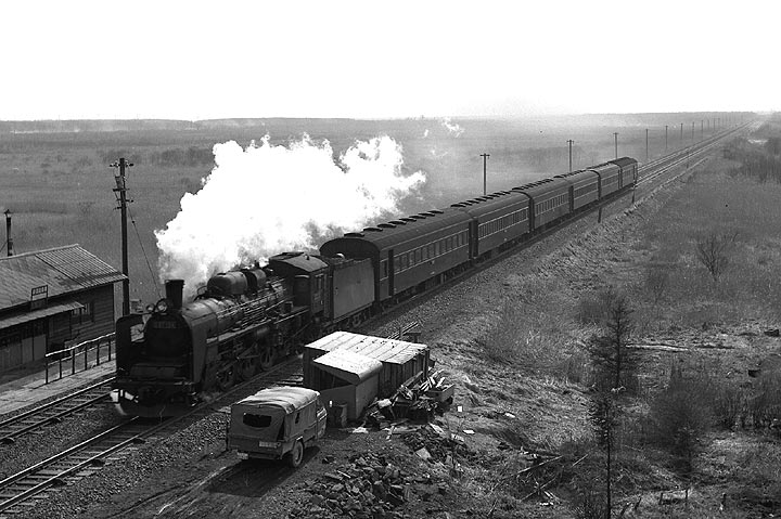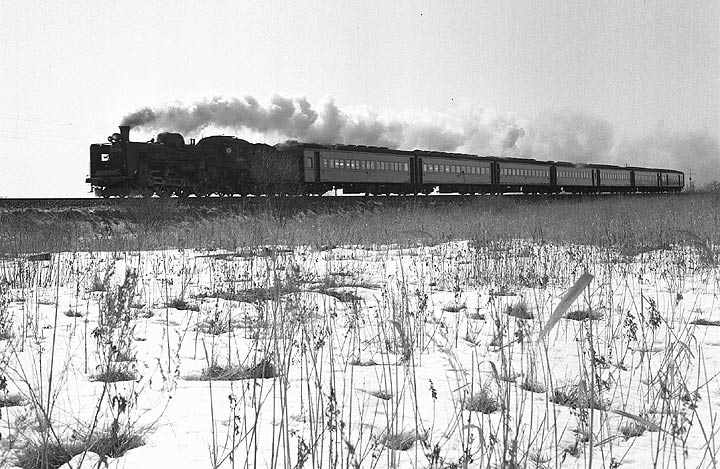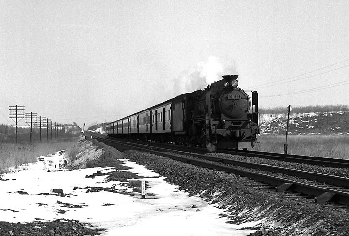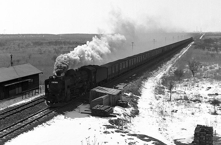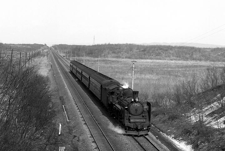 | 室蘭本線沼ノ端ー遠浅、この区間は一直線に続く複線の線路の上を、次から次へと蒸気機関車が やって来る、名撮影地でした。途中で千歳線も分岐をし、そちらにも蒸気列車が・・・・・。フィルムが いくらあっても足りないというポイントで、しまいにはD51の貨物列車はただ見送っただけのことも しばしばでした。私は1969年と1973年の二度ここを訪問しました。千歳線の植苗で降りて、沼ノ端 方面にしばし歩くと、やがて室蘭本線をオーバークロスする場所にでます。このあたりはネットでも 多くの方が発表されていますので、ご覧になった方も多いのでは?? ちなみに思鉄でもカモ団員が 以前にUPしています。特に迫力があったのは長い運炭列車でしょうか。また蒸気牽引列車どうしの すれ違いシーンなどは、ほかではなかなか見られないものでした。C57の旅客も魅力的でした。 |
