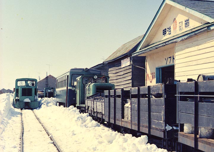 | 浜中町営軌道の車両は、当時の簡易軌道としては特別珍しいものではありませんでしたが、 30年が経過した今日では珍品ぞろいのような気がします。最後のページでは、茶内の工場の カットと特徴ある車両のカットを見ていただきたいと思います。 |