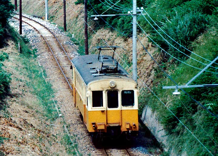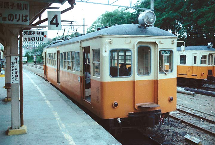 鮎川にて 左これもモハ1000形で元小田原急行モハ1型だが、相鉄時代には荷電として使われていた車両 |