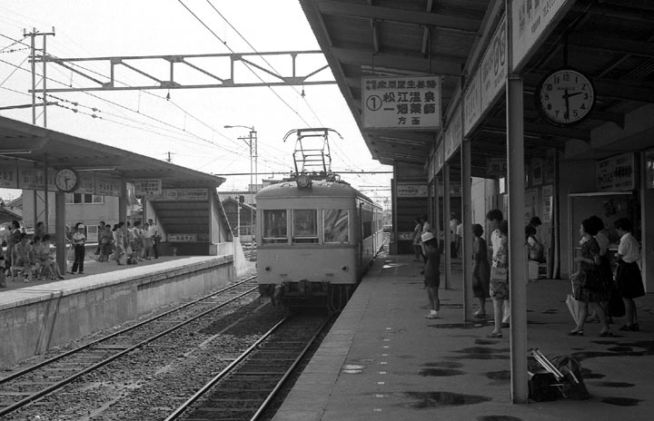 午後の雲州平田駅 一畑電鉄の中心駅ですが、当時は午後のこの時間でもかなりの乗客がありました。