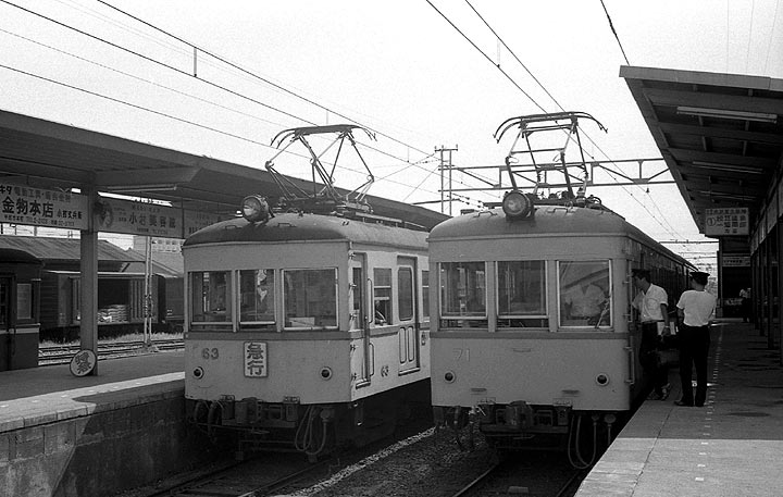 特急のマークも誇らしげに・・・ デハ72は元西武モハ303で1964年の入線 車内はセミクロスシート