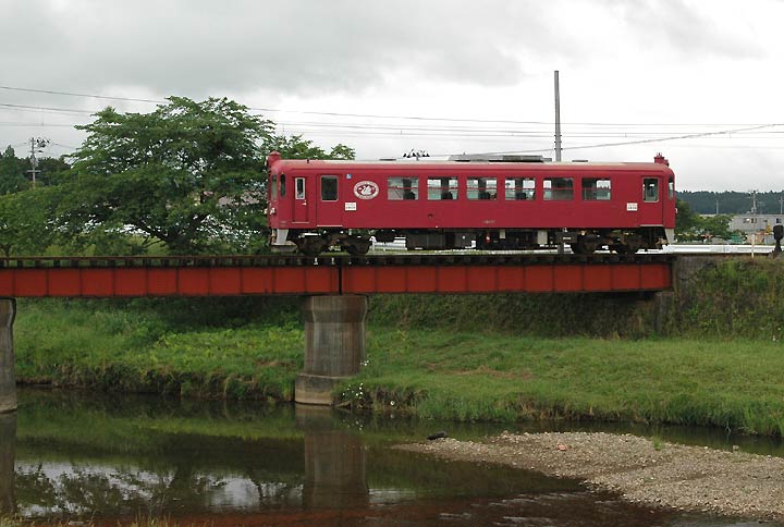 鴬沢ー鴬沢工業高校前 鴬沢駅の先で、小さな橋梁をわたります。
